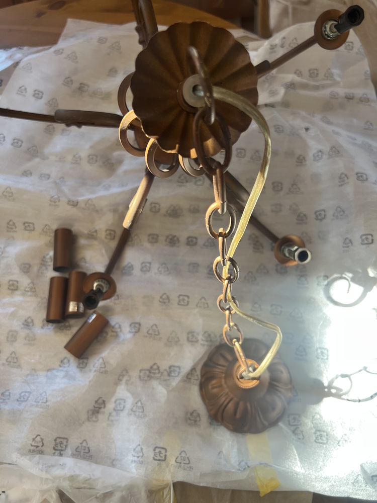 シャンデリア、塗装。 🐈Diary〜ハナウタmonologue〜 大津美紀 official community〜はなつきねこ〜 2025/12/19 23:45 フォロー もともとのオレンジっぽいゴールドがあまり好きではなく、アイアン塗料数色使い、アンティークゴールドに。何色か重ねることで、アンティークな雰囲気に。指にはめて塗る・笑! URLをコピーする 報告する